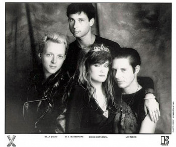 X in Los Angeles, 1981Comprised of singers Exene Cervenka and John Doe (who also doubled on bass), guitarist Billy Zoom and drummer DJ Bonebrake, from 1980-1983 X outdid themselves with each release: Los Angeles (1980), Wild Gift (1981), Under the Big Black Sun (1982) and More Fun in the New World (1983). All were produced by Ray Manzarek, who signed on after seeing the band perform at the Whisky A Go Go - his old stomping ground with The Doors.