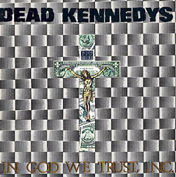 So I divided the songs up. Plastic Surgery had a very different flavor than Fresh Fruit, expanding on the "Holiday in Cambodia" side of the sound. And then in between was In God We Trust, Inc., which was more of a spontaneous, gut level reaction to the hostile takeover of our country by other Reagan regimes. That one actually began with the cover art. I saw that as a sculpture, a gallery exhibit of Winston Smith's work and was just floored by it and thought, "There's got to be a way to use this." And once Jerry Falwell began declaring him emperor of the country with veto power over the Reagan regime, there it was, In God We Trust, Inc. "Kepone Factory" was the first song Dead Kennedys ever learned, "Rawhide" went way back. As did "Religious Vomit," actually. And then "Hyperactive Child" was new and then there was the updated "California Über Alles," where I realized I was wrong about my conspiracy theory about Jerry Brown. Sure, I'd made it up all by myself and it turned out not to be true, so it was updated with Reagan lyrics until "We've Got A Bigger Problem Now," and the jazz version we goofed off with at sound check wound up becoming a staple of that record and the live show.