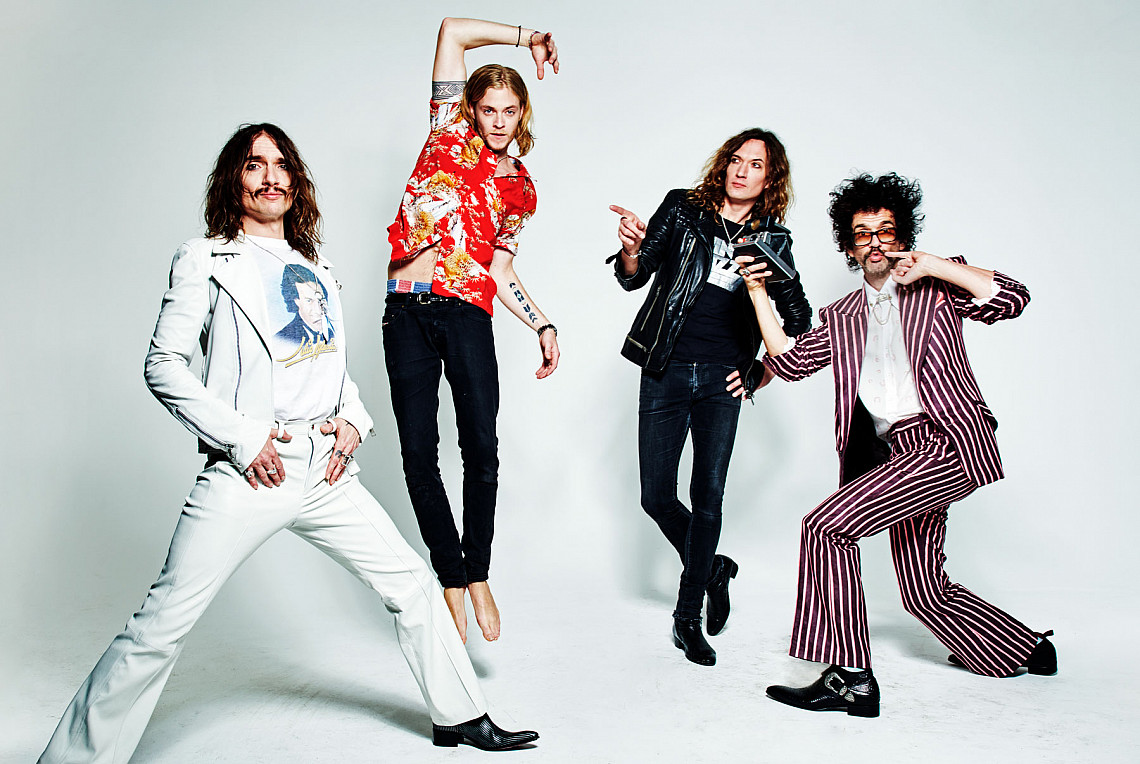Three of the four founding members are still with The Darkness: Hawkins, his brother Dan (guitar), and Frankie Poullain (bass). Their drummer these days is Rufus Tiger Taylor (far left in this photo), son of Queen's Roger Taylor.Hawkins: A lot of the album talks about history and the way we feel about our experiences. I remember when we first started, people were like, "Ah, rock and roll. At last, there is a band that has come to save rock and roll." And it always makes me laugh, because I think, "Rock and roll is the only genre that seems to need saving all the time." It's like terminally tied to the train tracks - a night train being driven by rap artists and jazz artists. You never hear the whole, "Who's going to save hip-hop?" None of them say that, do they? I always think, "If it's going to come precariously close to creative inertia - to the point where everything is completely retro and nothing exciting or challenging happens - then yes, the genre does deserve to die."
