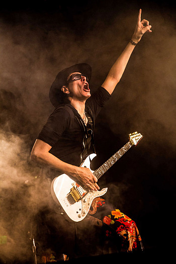 And if you look back at Vai's career, it certainly makes sense why he has mastered the art of keeping an audience entertained: He has played with and learned from some of the most entertaining performers rock n' roll has ever seen, including Frank Zappa, David Lee Roth, and David Coverdale.