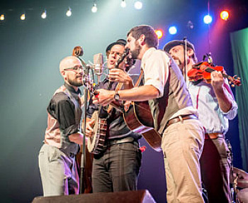 Although they're not technically a bluegrass act, they're nevertheless known for gathering around a microphone, with their strictly acoustic instruments, and performing in an unplugged, bluegrass style.