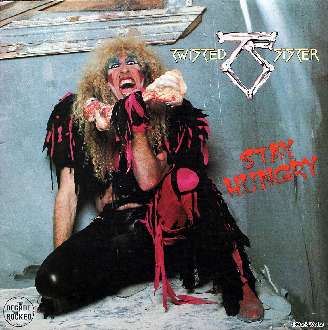 For Stay Hungry, the plan for the cover was was a photo of the band in an abandoned, grimy building in their street clothes, then with images of the group in their snazzy stage duds superimposed behind them. However, at the end of the photo shoot, photographer Mark Weiss had an idea to shoot the group's frontman, Dee Snider, solo.