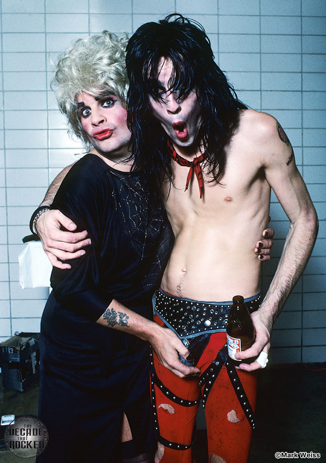 Vince Neil and OzzyWeiss set up a photo shoot with Ozzy dressed in a wig and wearing items from Mötley Crüe's trophy bin. Ozzy liked the look so much, he decided to wear it on stage.