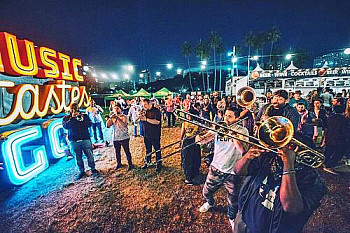 There was a lull between acts during the latter moments of the Music Tastes Good festival in Long Beach when the sound of music filled the air. That wasn't unusual; it was a music festival, after all. This music wasn't coming from a stage, though. Rather, it was emanating from around a big neon Music Tastes Good sign. Without microphones (the singer was actually singing out of a megaphone) the members of No BS! Brass Band were giving an impromptu performance for those waiting for the next stage performers.Fans made a circle around the band while they played an eclectic set, including songs by a-ha and Michael Jackson. This was feel-good music, from a feel-good-music band mostly comprised of talented brass musicians. Everybody was having a good time, and that's what No BS! Brass Band is all about.