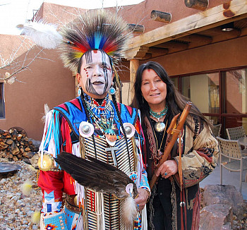 Fabian is an extremely talented Mens Northern Traditional dancer; he is deeply committed to his Zuni and Omaha traditions and religion. He is an educator on Native American culture. What he brings to our performances is so beautiful and inspiring. We have found a way to combine the Native Contemporary music that I love to write with the very traditional dance, traditional music and storytelling that he shares. Some of the songs I write I have included traditional rhythms to the music so that Fabian can dance while I sing. Somehow our collaboration, from the very beginning, has always been so natural. When I present my contemporary songs for our shows Fabian is a fantastic choreographer and knows just what to do.