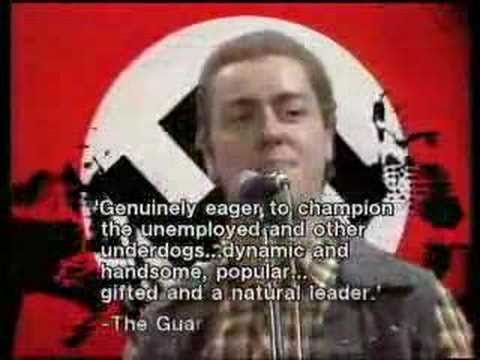 It goes without saying that Mosley could not have expected the same consideration from Not The Nine O'Clock News; "Baronet Oswald Ernald Mosley" was written in the wake of his death by the show's parodist and songwriter Peter Brewis, who is said to have gone out and bought all the following day's newspapers to glean quotes to incorporate into his work. He slaved through the night on the song, which includes some of these - in retrospect embarrassing - quotes from Mosley's early career, and deliberately awful lyrics to be recited by suitably moronic looking Mosley supporters.
