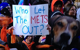 Even in 2015, "Who Let The Dogs Out" was being evoked at sporting events. This Mets fan even brought along his doggie Fathead to go with his sign. The Mets did get by the Cubs, but lost to the Royals in the World Series.