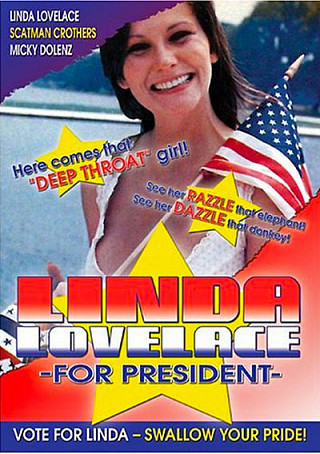 Linda Lovelace (1949-2002), seen here in the poster for her movie Linda Lovelace for President, inspired the John Lees song "Polk Street Rag". Linda Susan Boreman grew up in a strict Catholic household, the daughter of a New York police officer. After "starring" in Deep Throat and other porn films she was busted for possession before finding the God she had lost. She spent the rest of her life campaigning against the porn industry.