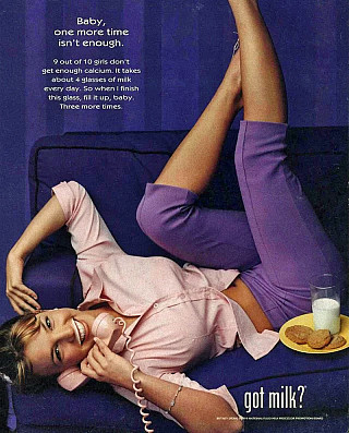 In the summer of 1999, Britney Spears was wholesome enough to be chosen for the Got Milk? campaign. The copy reads: