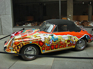 Janis Joplin didn't own a Mercedes Benz - she had a Porsche that went on a long, strange trip. She bought the car, a 1965 356c Cabriolet, for $3500 in 1968. It was white when she got it, which wouldn't do, so she had her artistic roadie Dave Roberts give it a psychedelic makeover that was dubbed "History of the Universe," complete with mushrooms, butterflies, and skulls. She drove it just about every day; the car served as a beacon, revealing her location. Fans would often leave notes for Joplin under the wipers when they spotted it.