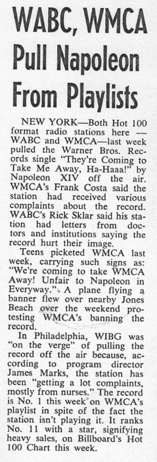 The Billboard story explaining how "They're Coming To Take Me Away, Ha-haaa" was pulled from playlists because it "hurt the image" of radio stations.
