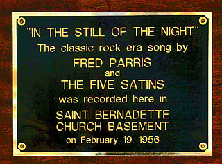 A plaque dedicated to The Five Satins and their historic song stands in Saint Bernadette Church, New Haven, where it was recorded. The song seemed blessed, becoming one of the most popular doo-wop recordings of all time.