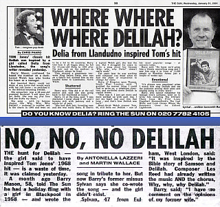 The Sun newspaper put out a call looking for "Delia from Llandudno," who the song's cowriter Barry Mason said was the inspiration. The search was abandoned when another co-writer on the song, Mason's ex-wife Sylvan, called the tipline to reveal that "Delia" did not exist - the name came from the Biblical story of Sampson and Delilah.