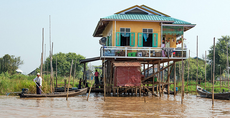 Stilt houses on Inle Lake, Shan State, Myanmar