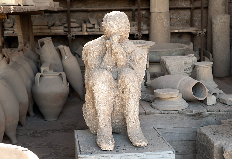 This victim of the 79 AD Mount Vesuvius eruption appears to be praying